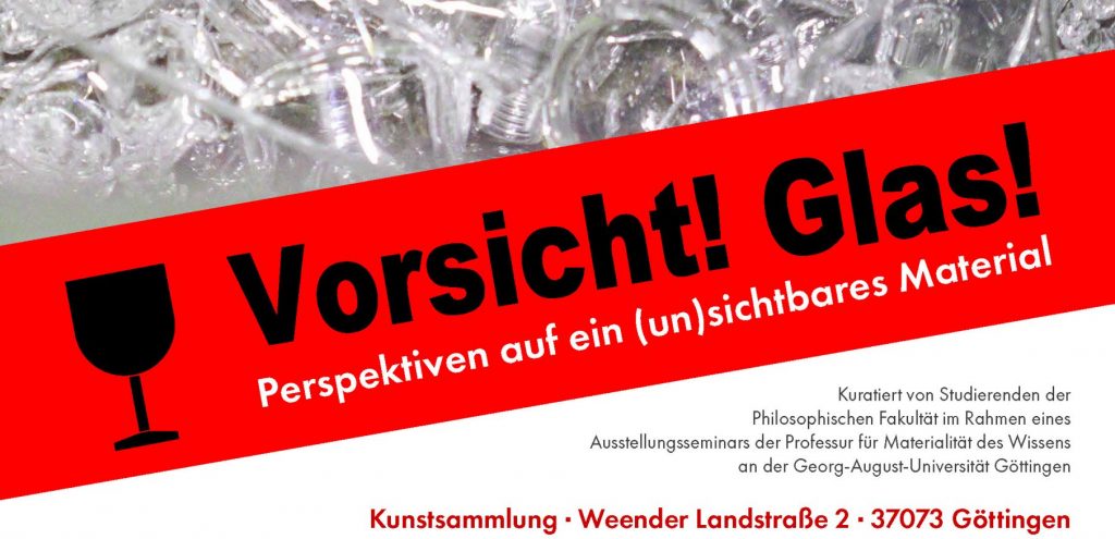 Der Werkstoff Glas ist für die Chemie nicht nur im Laboratorium so unendlich wichtig. Folgerichtig haben wir gerne aus unserer umfangreichen Sammlung etwas beigesteuert, als wir von Studierenden gebeten wurden, mit einigen unserer Exponate aus dem MUSEUM DER GÖTTINGER CHEMIE in ihrer Ausstellung „VORSICHT GLAS“ vertreten sein zu dürfen: